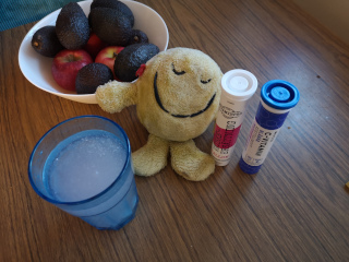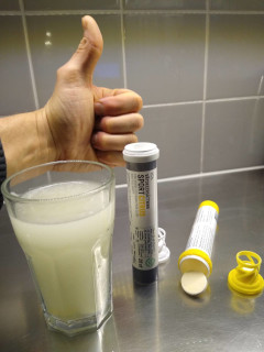 - Du plockar fram två rör brus, en vätskeersättningsbrus och en c-vitamin-brusare. Gärna med orange och ananas flavah.